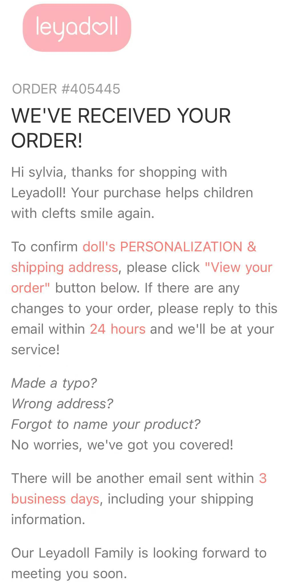 Your order confirmation email is sent to your inbox as soon as your order is placed successfully. If you don’t see it, check your spam folder and try searching "Leyadoll" in your email search bar.